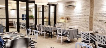 Mother May I มาพร้อมกับบรรยากาศแสนอบอุ่นของบ้านสไตล์ English Country ผสม Hampton Design ที่เน้นตกแต่งภายในด้วยธีมสีขาวและเฟอร์นิเจอร์ไม้ เพื่อสร้างความสบายตาและสบายใจให้ผู้ที่มาเยือนได้ชมสวนสวยสไตล์อังกฤษที่ทางร้านตั้งใจจัดและดูแลเป็นอย่างดีระหว่างการทานอาหารมื้อพิเศษ