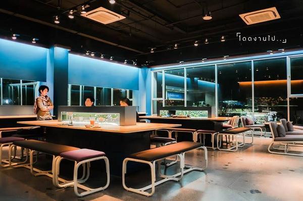 TANK Restaurant & Cafe ร้านอาหารญี่ปุ่นสไตล์ comfort food และ cafe กาแฟ ชา เครื่องดื่มต่างๆ พร้อมขนม และ homemade gelato/sorbet ในบรรยากาศโลกใต้น้ำ ท่ามกลางฝูงปลากว่า 500 ชีวิตในตู้ปลาขนาดใหญ่ เล็ก ทั่วร้าน บนพื้นที่ 330 ตร.ม. และนับเป็น aquarium restaurant แห่งแรก และแห่งเดียวในกรุงเทพมหานคร