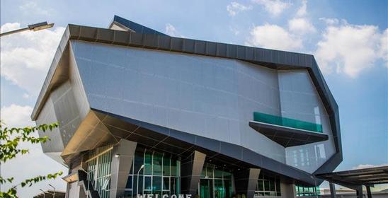 สังเกตุตึกเหลี่ยมๆ สีเมทัลเลค สวยงาม (ตามรูป)
