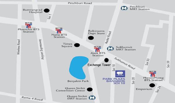 | BTS Asoke - 540 m. | MRT Sukhumvit - 640 m. |