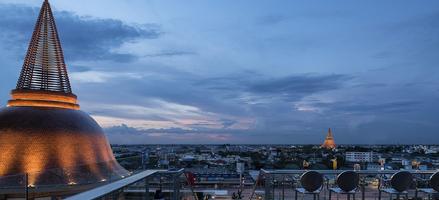 Mida Dhavaravati Grande Hotel Nakhon Pathom is a luxury upscale hotel brand, designed for either business or leisure where is located in the city centre of Nakhon Pathom. Incomparably atmosphere of the perfectly elegant which blend in stylish living with the Dhavaravati arts and dining experience, Sky Bar brings you for a panoramic 360 degree view overlook of the surrounded ancient city of Thailand